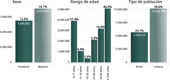 Por otra parte, la infraestructura pública de telecomunicaciones y los servicios públicos digitales no son aprovechados de la misma forma por los distintos sectores de la población en México. Las condiciones de las poblaciones más vulnerables interactúan entre sí dando lugar a una amplia brecha de alfabetización digital entre las personas que habitan en zonas rurales, pertenecen a comunidades indígenas y son adultas mayores.