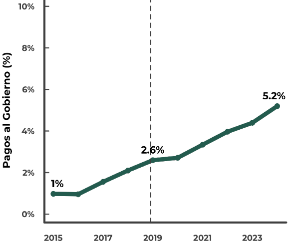 En cuanto al uso de las plataformas de gobierno para la realización de pagos, se observa un incremento sostenido en el porcentaje de la población que realiza pagos al gobierno mediante internet, alcanzando un 5.2% en 2024, con respecto al 1% en 2015 (ENDUTIH, 2024).